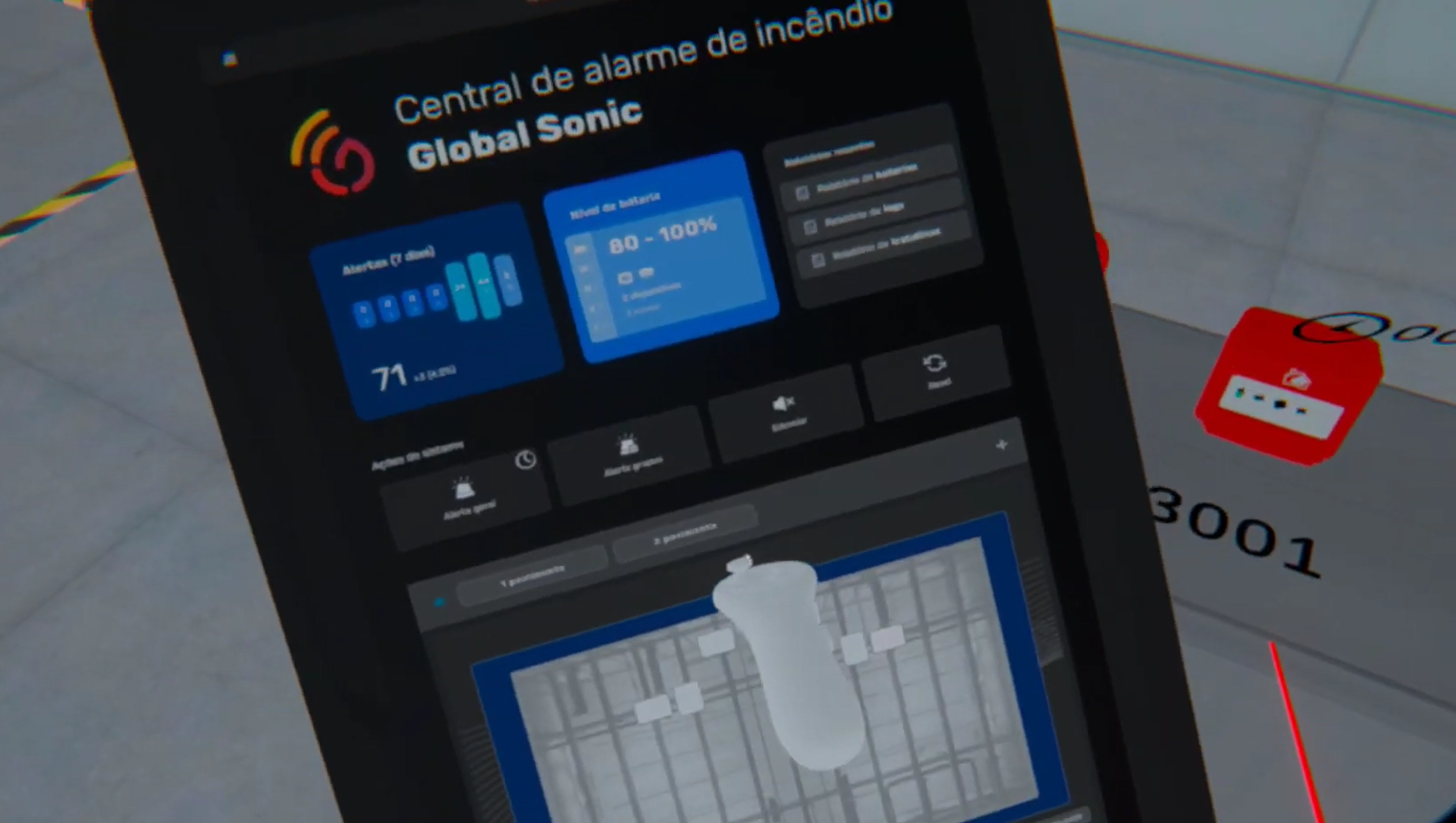 Desenvolvemos para a Global Sonic duas experiências imersivas em realidade virtual, projetadas para demonstrar e capacitar os participantes no uso e na importância dos sistemas de alarme de incêndio com tecnologias wireless, além de engajá-los com um game interativo e educativo. Essas simulações foram apresentadas com grande sucesso na Feira Internacional de Segurança ao Trabalho.